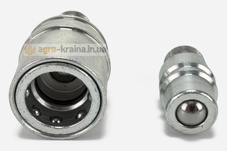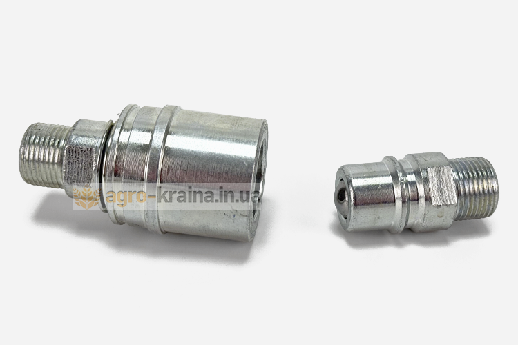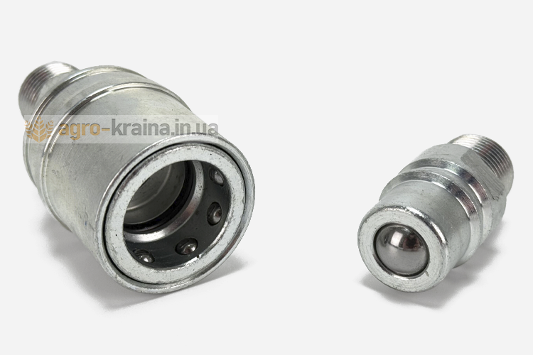 Тракторы марок МТЗ, ЮМЗ оснащены гидравлическими системами, предназначенными для привода гидравлических устройств, применяемых на самом тракторе или на оборудовании, работающим с ним в агрегате. В сельскохозяйственных машинах такими устройствами являются гидроцилиндры и гидромоторы. Присоединение их трактору осуществляется с помощью рукавов высокого давления через специальные соединительные муфты. Они бывают разной конструкции, но наиболее распространенными и удобными в настоящее время являются муфты разрывные гидравлические МТЗ, ЮМЗ. Используются они, как для присоединения гидравлических магистралей к гидросистеме трактора, так и для соединения рукавов между собой в местах, где необходимо часто их рассоединять. Состоит муфта гидравлическая разрывная ЮМЗ, МТЗ из двух частей цилиндрической формы. В замкнутом состоянии половина муфты, имеющая меньший диаметр находится внутри половины с большим диаметром. В каждой половине установлен подпружиненный клапан, закрывающий выходное отверстие при разомкнутом состоянии муфты. При ее замыкании клапаны разжимаются в разные стороны, открывая свободный проход маслу. В соединенном состоянии обе части разрывной муфты гидравлической ЮМЗ, МТЗ удерживаются специальными подпружиненными шариками, установленными по окружности внутри охватывающей части устройства.