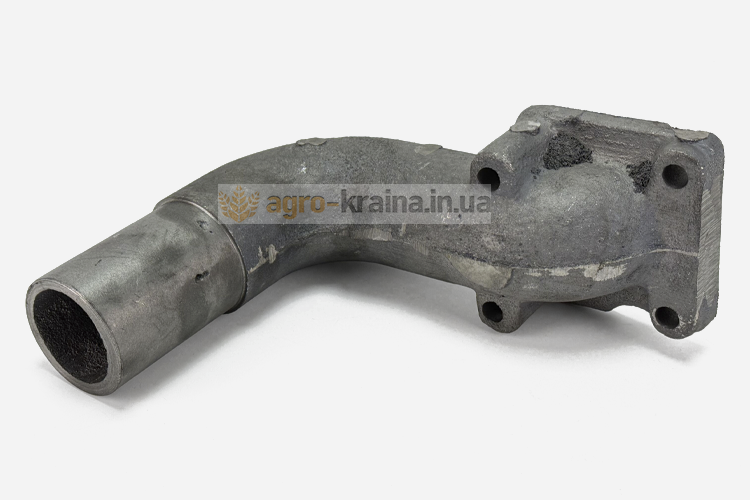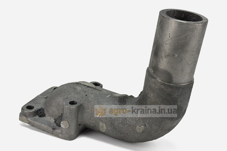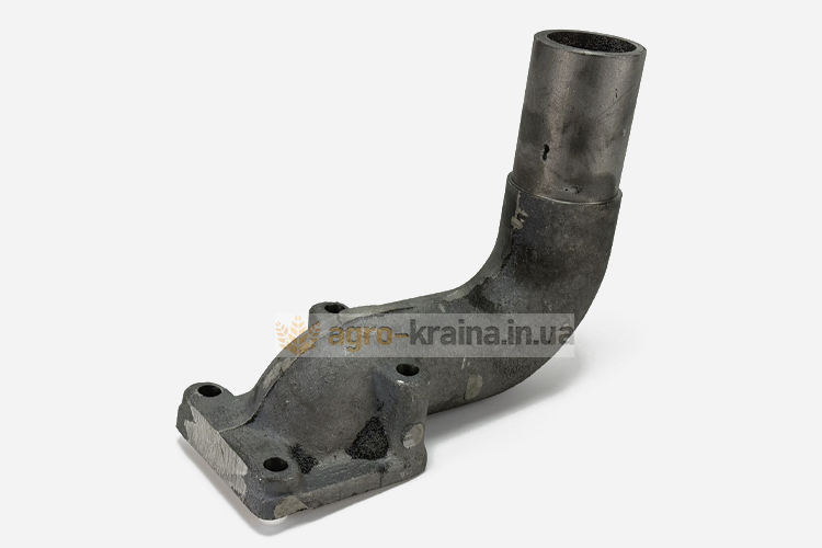 Выпускной коллектор – это чугунная литая пустотелая деталь, имеющая четыре ответвления, на концах которых выполнены фланцы, предназначенные для соединения с выпускными окнами головки блока цилиндров. Плоскости фланцев обработаны механическим способом с целью максимального прилегания к плоскостям окон головки. При установке коллектора стыки соединений уплотняются прокладками. Сверху в средней части коллектора выполнено окно, через которое выхлопные газы попадают в патрубок выхлопного коллектора изогнутый Д-65 ЮМЗ. Патрубок присоединяется к окну коллектора через прокладку. На тракторах ЮМЗ обычно завод устанавливал прямой патрубок. В таком случае его соединение с глушителем проходило через отверстие в капоте, а сам глушитель находился над капотом, что ограничивало видимость для тракториста. Патрубок коллектора изогнутый Д-65 ЮМЗ позволяет вынести глушитель в сторону и тем самым улучшить обзорность трактористу. Он выходит из под капота с левой стороны, а на его обработанную верхнюю часть одевается глушитель и закрепляется хомутом.