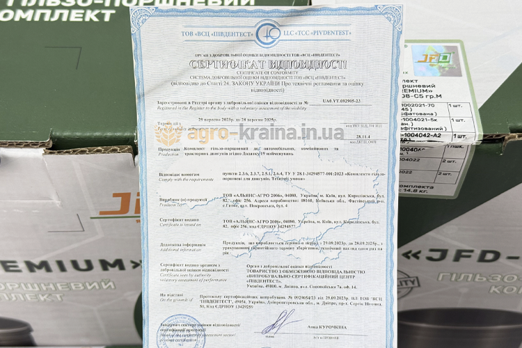 - JFD (Китай). Бренд український, але виготовляється у Китаї. Його поршневі комплекти вже понад рік продаються на ринку України. Гарна якість за прийнятну ціну.