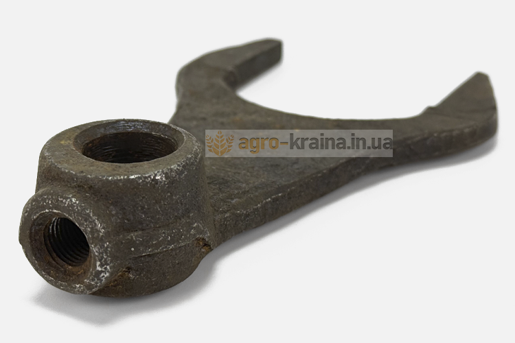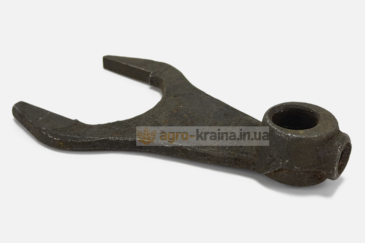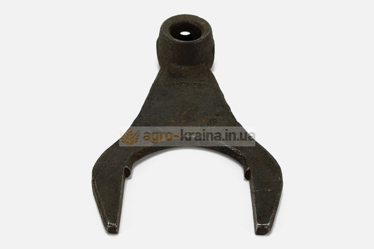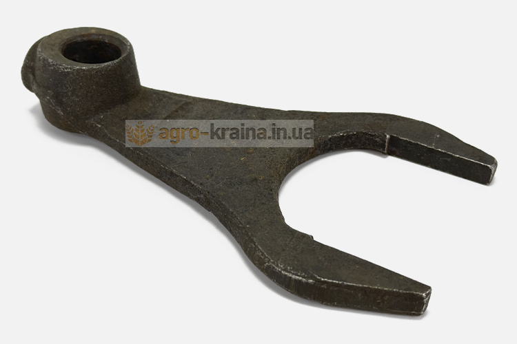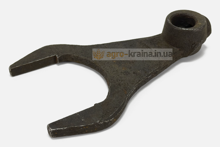 Вилка на валик переключения должна одеваться без люфта. Нижний конусный конец болта крепления вилки должен плотно заходить в отверстие валика. Если в сопряжении вилки с валиком в процессе работы не возникает люфтов, то она будет надежно удерживать каретку от выхода из зацепления. Также нужно обращать внимание на состояние рожек вилки. Если есть большая выработка, то это тоже может быть причиной выбивания скоростей во время движения. Правильным решением является замена вилки при обнаружении износа любой рабочей поверхности. Чтобы купить недорого качественную вилку переключения 1,2,4, задней передачи ЮМЗ, обращайтесь в нашу компанию Агро-Краина.