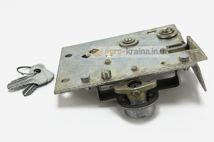 В восьмидесятых годах прошлого столетия завод ЮжМаш начал устанавливать на свои тракторы ЮМЗ новую модернизированную кабину. По сравнению со старой тесной кабиной она была просторной и более комфортной. Обширное остекление позволяло иметь хорошую обзорность, а открывающиеся боковые и заднее окно – неплохую вентиляцию в жаркие дни. В новой кабине установлено удобное регулируемое сиденье и регулируемая рулевая колонка. Изменениям подверглись также и двери. Они стали намного больше и в них появилось еще и нижнее стекло. Двери открываются с помощью ручек встроенных в правый и левый замок ЮМЗ. Замки позволяют дверям легко открываться, как снаружи, так изнутри. С наружной стороны есть возможность закрывать двери на ключ, так как правый и левый замок ЮМЗ с ключом поставляются с завода. Это очень полезная опция, позволяющая трактористу закрыть кабину в конце смены и предотвратить в нее доступ посторонним. В процессе работы тракторист для входа и выхода из кабины пользуются обычно левой дверью, а правая открывается очень редко. Поэтому левая дверь изнашивается и повреждается больше, чем правая. По этой же причине чаще выходит из строя и замок двери левый ЮМЗ. Поломка замка – неприятная проблема, так как дверь невозможно закрыть. Поэтому обычно все трактористы стараются поскорее решить эту проблему. Иногда замок удается починить, но далеко не всем это удается сделать. Поэтому приходится искать новый замок левой двери ЮМЗ с ключом.
